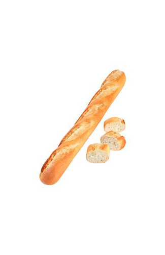 A white, part baked baguette on average 540mm (approx. 21.1/4") in length. The product has 5 decorative top cuts and is supplied frozen for bake off by the customer.