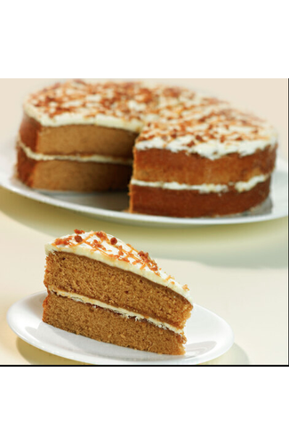 A moist toffee sponge filled with a layer of toffee sauce and filled and topped with toffee icing. The cake is finished with a toffee sauce drizzle and a sprinkling of toffee pieces. Pre-sliced into 14 pieces to reduce waste and provide better portion control. 1.8kg catering bulk boxes.
