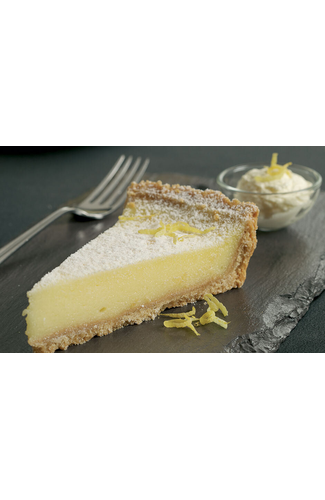 A soft pastry case filled with a baked lemon custard, finished with a sugar dusting