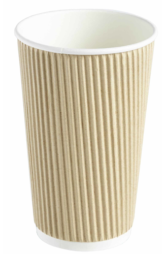 16OZ PURE KRAFT RIPPLE WRAP PAPER COFFEE CUP Size: 453ml/16oz Case Configuration: 20 x 25 Manufactured from premium food grade cup stock, single poly-coated 16oz Double Wall/Triple Layer Kraft Ripple Wrap Paper Cups in plain brown. Made for the Coffee to go Market.