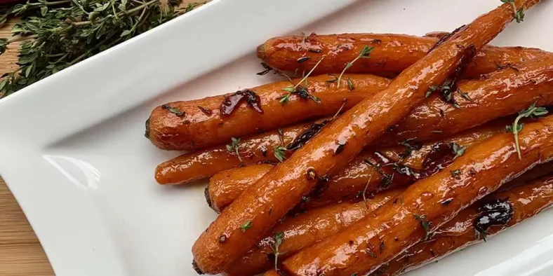 - Prepare your carrots (long ones with their tops and bottoms still on look best) and add to a roasting tin with the oil, marmalade, salt and pepper, 5-10 sprigs of thyme, and coat evenly.